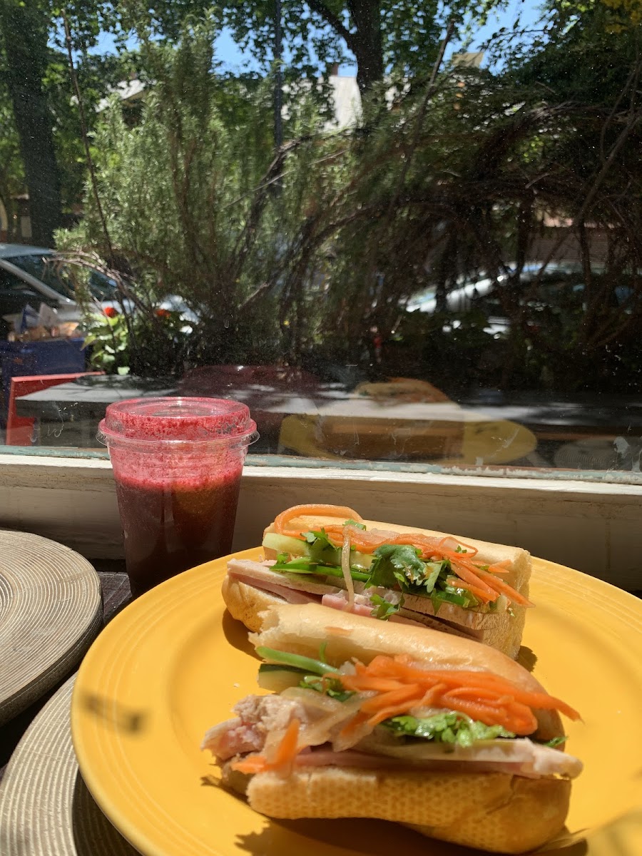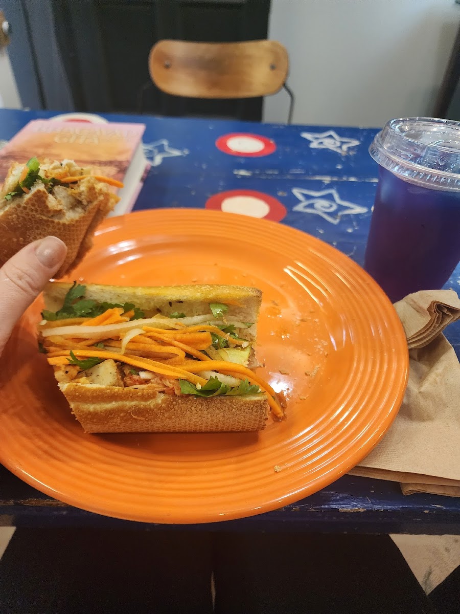 Phenomenal— banh mi was perfection, crunchy fresh bread, good meat variety, yummy pickled carrots and good jalepenos. I got the purple butterfly pea tea as well which was so refreshing and had tea ice cubes so it didn’t water down as it melted. Took it to go and ate it at home, but super cute space as well. Banh mi + tea was $14 total so great deal.